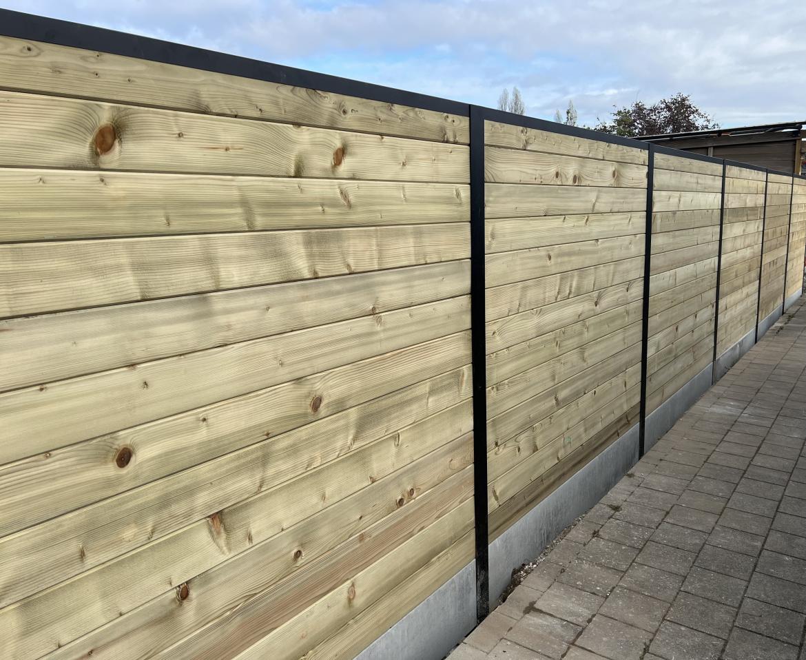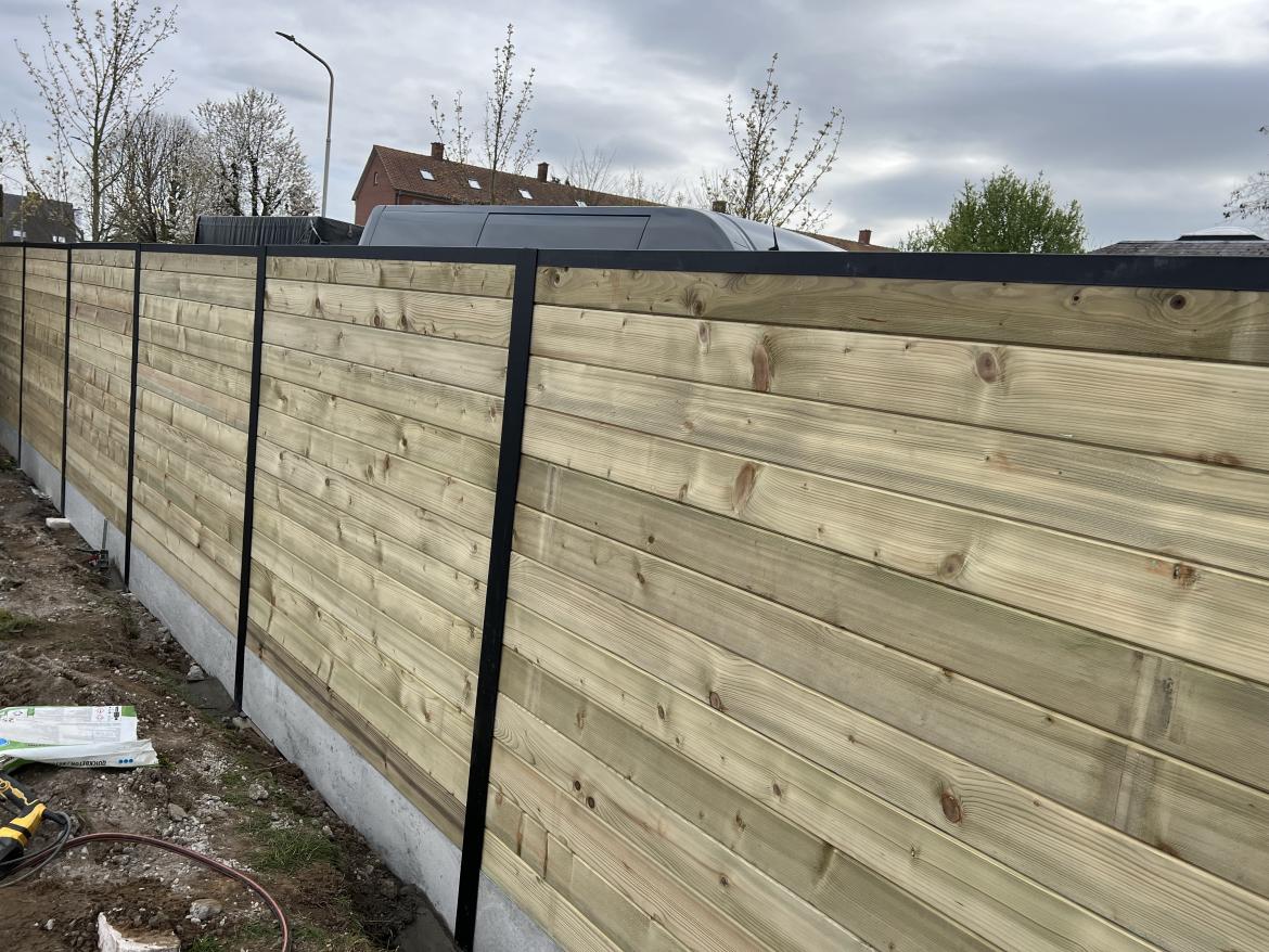 Leveren/plaatsen buitenschrijnwerk houten afsluiting met stalen palen
